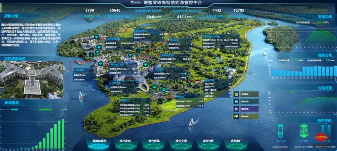 该技术成果可广泛应用于零碳园区低碳建筑光储直柔系统的源网荷储“电碳”管控平台,与电网协同适配,目前已在博鳌东屿岛零碳示范区完成实施。该项目提出包括经济性、碳排总量在内的多目标优化策略算法,实现节能经济效益提升8%以上。在电碳精确化计量方面,形成了考虑储能的覆盖实时、日、周、月、年等多时态需求的电力碳流精细化计算方法。综合形成光储直柔能碳精细化管控平台,以年为统计周期,博鳌新闻中心可再生能源利用率达 100%。项目运行结果表明:系统运行稳定、可靠,降低了供电能耗,提升了供电能力。